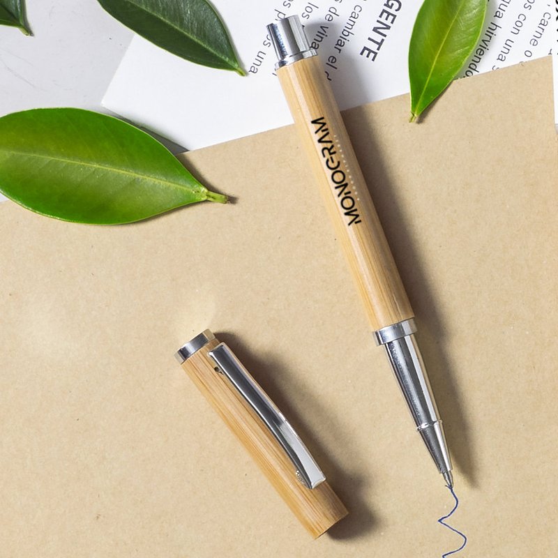 Roller hood pen in nature line. Made of bamboo, with a soft finish and chrome accessories. Jumbo cartridge, with blue ink.