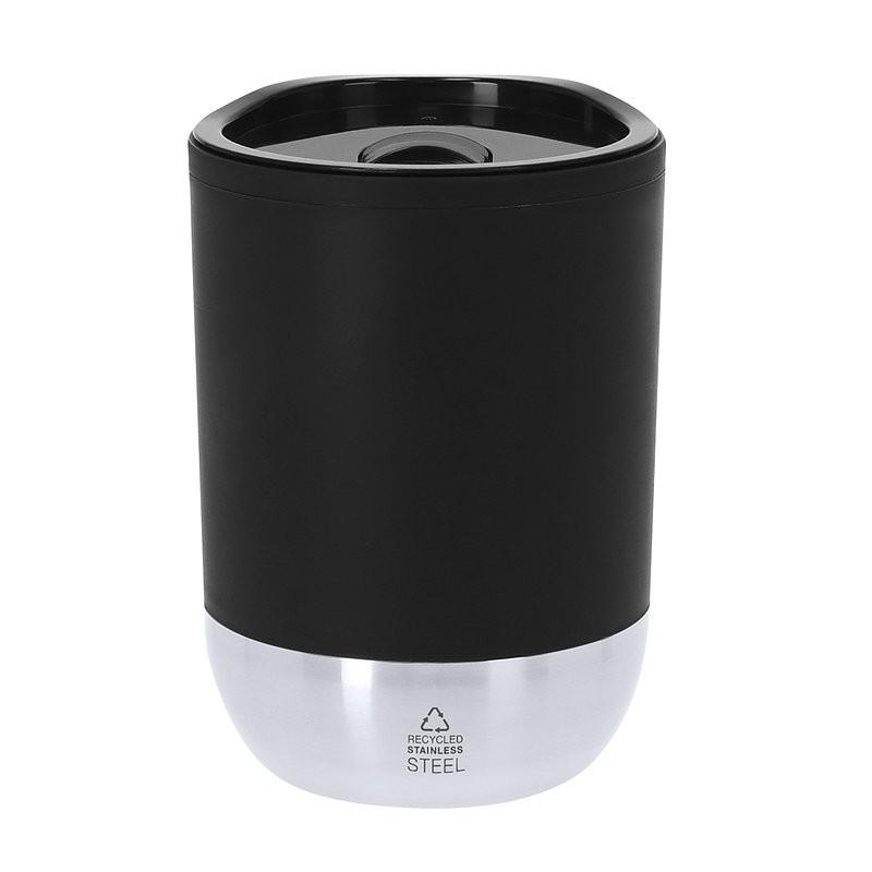 290 ml capacity thermal cup. Made from durable double-walled Recycled PP, combined with a base in Recycled Stainless Steel. Lid with easy-open dispenser, BPA-free. It's ideal for keeping on your desk, table or any surface where you can comfortably enjoy your favorite drink. With Food Grade certification, ensuring safety when food comes into contact with the material used to manufacture the product. Distinctive Recycled Stainless Steel label. Recycled PP is a recycled and highly recyclable plastic, very resistant and suitable for many applications. Steel is one of the most in-demand materials and can be found almost everywhere, from everyday products to large constructions. With countless properties, among which durability and its high degree of reuse stand out, making it a highly valued alternative in sustainability solutions. Properly treated, it can yield new infinitely usable resources.