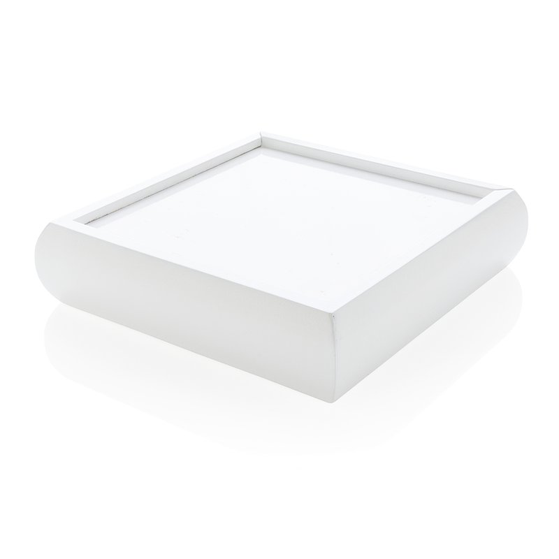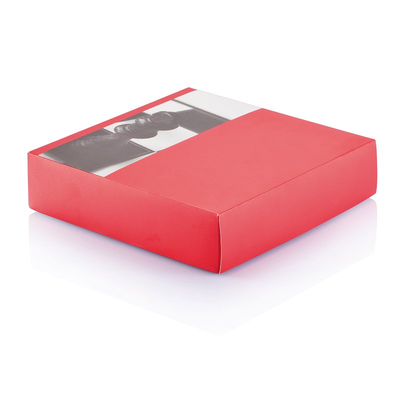Set juegos 5 en 1 incluye: mikado, cartas, domino, ajedrez y backgammon. Caja blanca de madera de pino 17x17x3,7cm con tablero de ajedrez en una cara y tablero rojo y negro backgammon en la parte inferior de la caja. Un lado de la tapa deslizante es apto para impresión de logo. Presentado en caja negra con tapa roja y tapete rojo interior.