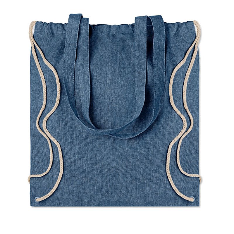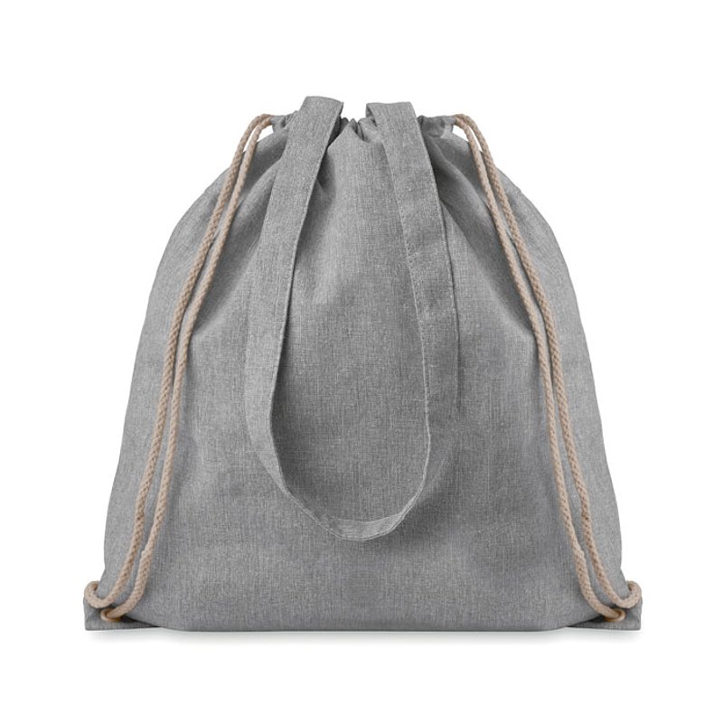Bolsa de la compra jaspeada de algodón y poliéster reciclado con cuerdas y asas largas (20%/80%). 140 gr/m². Este artículo puede encogerse después de imprimir.