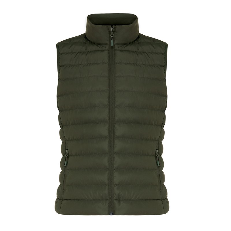 Chaleco medium fit de mujer confeccionado 100% con poliéster reciclado. Totalmente acolchado con relleno de perlas de poliéster 100% reciclado. Tiene una cremallera invertida en la parte delantera y prácticos bolsillos con cremallera en las costuras laterales. Todas las cremalleras tienen tiradores adicionales en colores a juego para una apariencia refinada. Las sisas tienen ribetes elásticos y todas las costuras del interior tienen un acabado limpio con ribetes reciclados. Impregnación repelente al agua libre de flúor/PFAS. El uso de materiales de tela reciclados genuinos y las afirmaciones de impacto ambiental están garantizados mediante el uso del trazador físico disruptivo AWARE™ y la tecnología blockchain. Al escanear el código QR, obtendrás acceso a un pasaporte digital exclusivo. El 2% de los ingresos de cada producto vendido se donará a Water.org. Este producto tiene la certificación OEKO-TEX® STANDARD 100. El chaleco también está disponible para hombre.