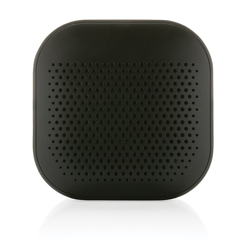 Altavoz inalámbrico de 3W fabricado con ABS reciclado certificado RCS (Recycled Claim Standard). Contenido reciclado total: 41% basado en el peso total del artículo. La certificación RCS garantiza una cadena de suministro completamente certificada de los materiales reciclados. El altavoz está equipado con una batería de 400 mAh para garantizar hasta 3,5 horas de tiempo de reproducción y BT5.3 para una conexión fluida y un sonido claro. Rango de conexión de hasta 10 metros. Con micrófono para contestar llamadas. Presentado en caja de mezcla FSC®. Incluye cable de carga de TPE reciclado certificado por RCS. Artículo y accesorios 100% libres de PVC. IPX4 resistente al agua.