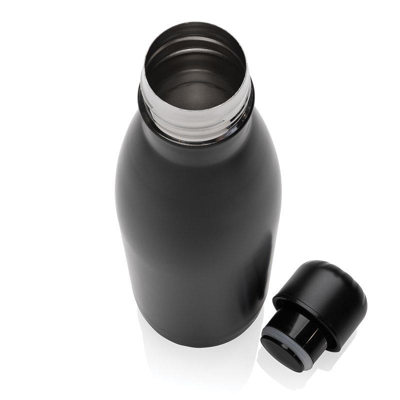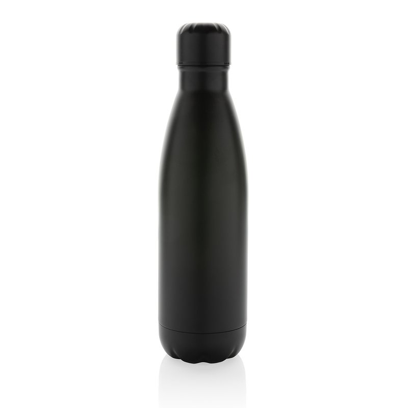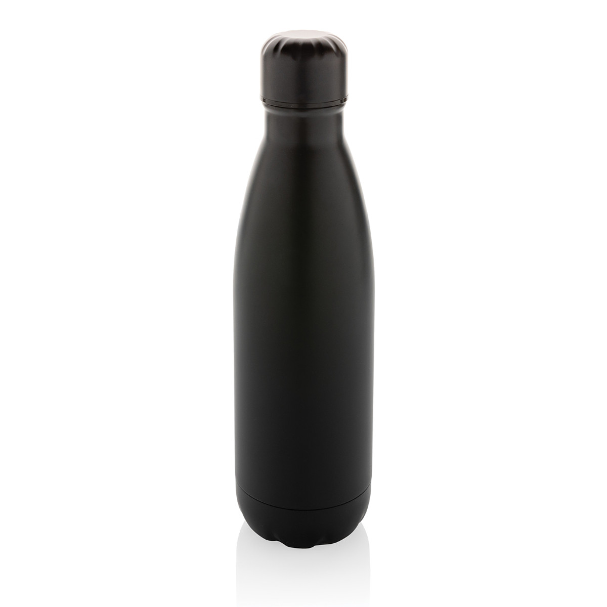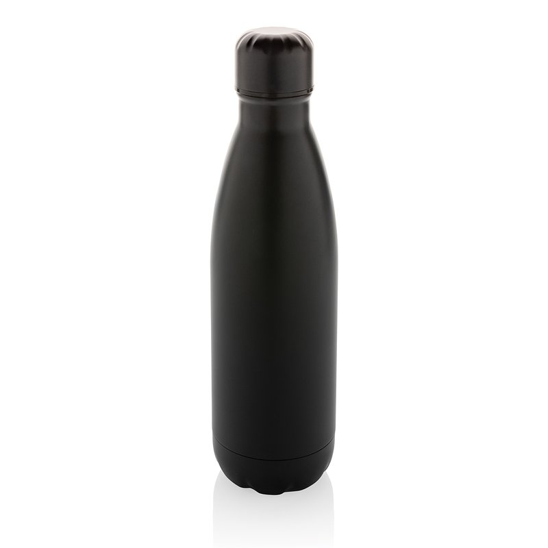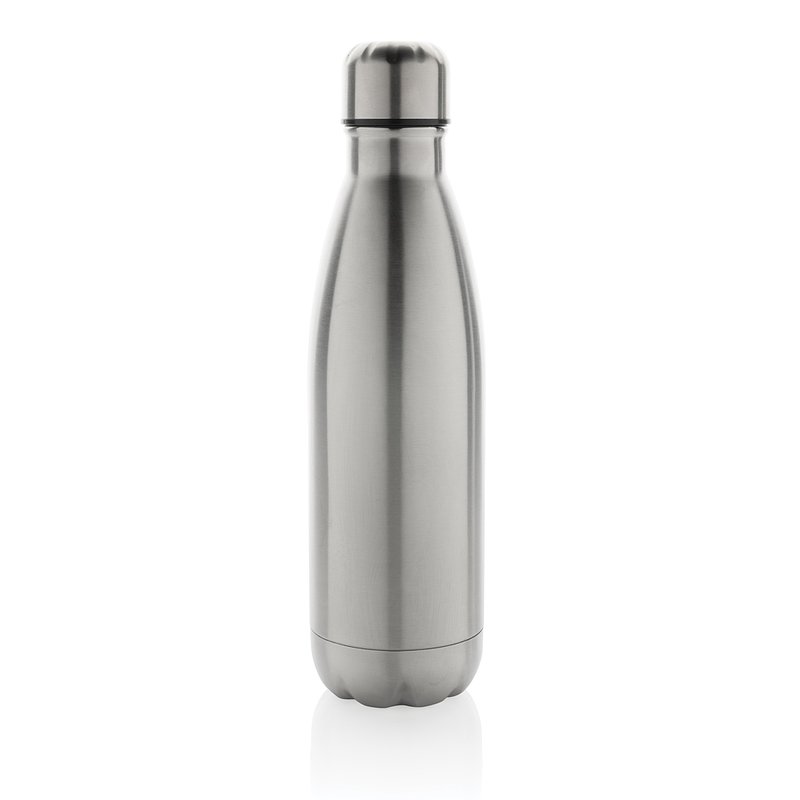 Eleva tu consumo diario de agua con esta botella de acero inoxidable de una sola pared. La botella es adecuada solo para bebidas frías. Con una base que cabe en la mayoría de los portavasos, esta elegante botella de agua te mantendrá hidratado dondequiera que estés. Fabricado con materiales reciclados certificados RCS (Recycled Claim Standard). La certificación RCS garantiza una cadena de suministro completamente certificada de los materiales reciclados. Contenido reciclado total: 84% basado en el peso total del artículo. Sin BPA. Capacidad 500ml. Incluye embalaje kraft certificado FSC®.