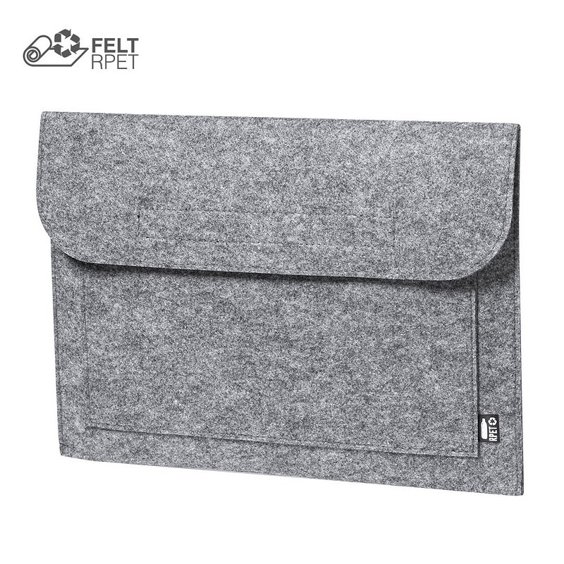 Funda para ordenador portátil de línea nature y en resistente fieltro RPET reciclado, fruto de la combinación del proceso de reciclaje de materiales plásticos junto con la técnica milenaria de fabricación del fieltro, dando como resultado un material de eco-tendencia que, además de ser de origen reciclado, también se convierte en reciclable. Solapa con cierres de velcro y bolsillo frontal, con distintivo RPET en etiqueta exterior.