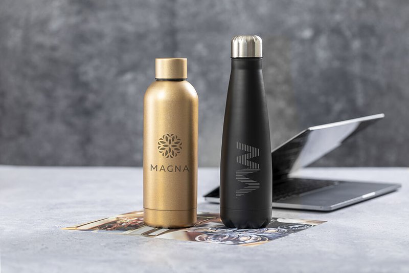 Bidón de acero inox de 800 ml de capacidad, disponible en variada gama de colores metalizados de acabado mate. Presentado en atractiva caja de diseño.