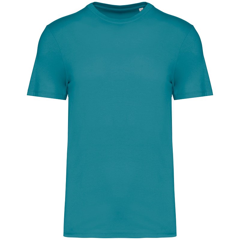100% algodón orgánico. Algodón peinado Ringspun. Corte ajustado. Costuras laterales. Lavado con enzimas. Dobladillo con doble pespunte en el bajo de las mangas y el bajo de la prenda. Canalé 1 x 1. Tira cubrecosturas de punto Jersey a tono en el cuello.