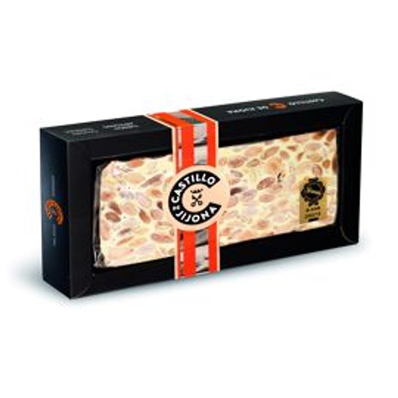 El Turrón de Alicante Gourmet de Castillo de Jijona es una expresión culinaria de la más alta calidad, donde la perfección se encuentra en la precisión de sus ingredientes y la maestría en su elaboración. Con un 67% de almendra tostada, este turrón destaca por su contenido generoso de almendras, aportando un sabor auténtico. La cuidadosa combinación de almendra tostada, azúcar, miel y clara de huevo revela la dedicación artesanal detrás de cada porción. La oblea* actúa como un delicado soporte, añadiendo una textura adicional que realza la experiencia gourmet. Presentado con refinamiento en un estuche transparente que resalta la cuidada elaboración, nuestro Turrón de Jijona Gourmet no solo encanta al gusto, sino que también cautiva los sentidos, convirtiéndolo en un regalo atractivo visualmente y delicioso para compartir en momentos especiales. Este Turrón de Alicante Gourmet es un testimonio de la tradición y la excelencia de Castillo de Jijona en la producción de turrón de alta calidad. Cada detalle, desde la selección de ingredientes hasta la presentación final, refleja el compromiso con la autenticidad y el sabor refinado. Disfruta de la experiencia única que ofrece nuestro Turrón de Alicante Gourmet, donde la armonía de sabores y la calidad superior se fusionan para crear un turrón que va más allá de las expectativas tradicionales.