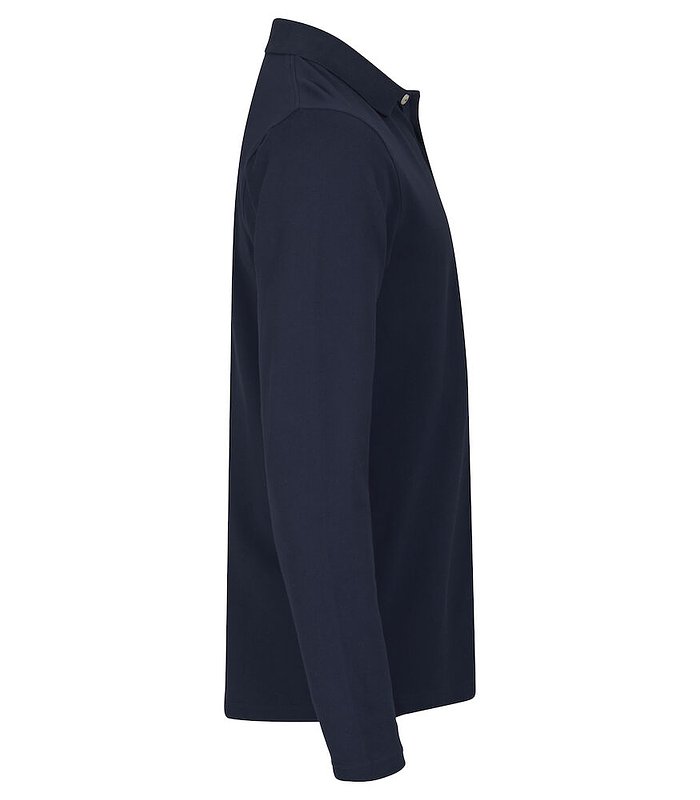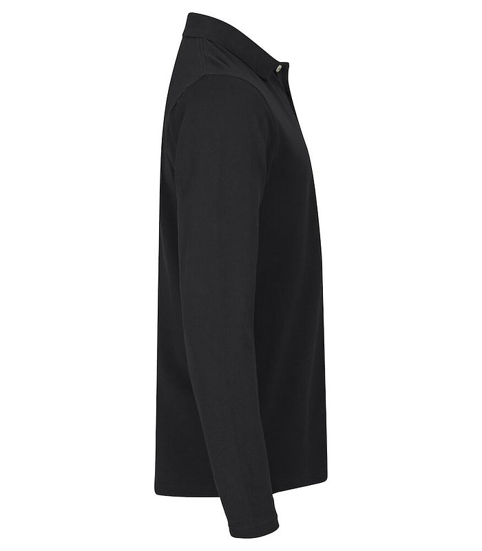 Polo de manga larga de alta calidad con una buena elasticidad. Este polo sin puños presenta 2 botones con aspecto perlado. Cinta de espiga en el cuello y una cruz bartac en la abertura lateral. De fácil reetiquetado. La prenda está preencogida y con tratamiento enzimático.